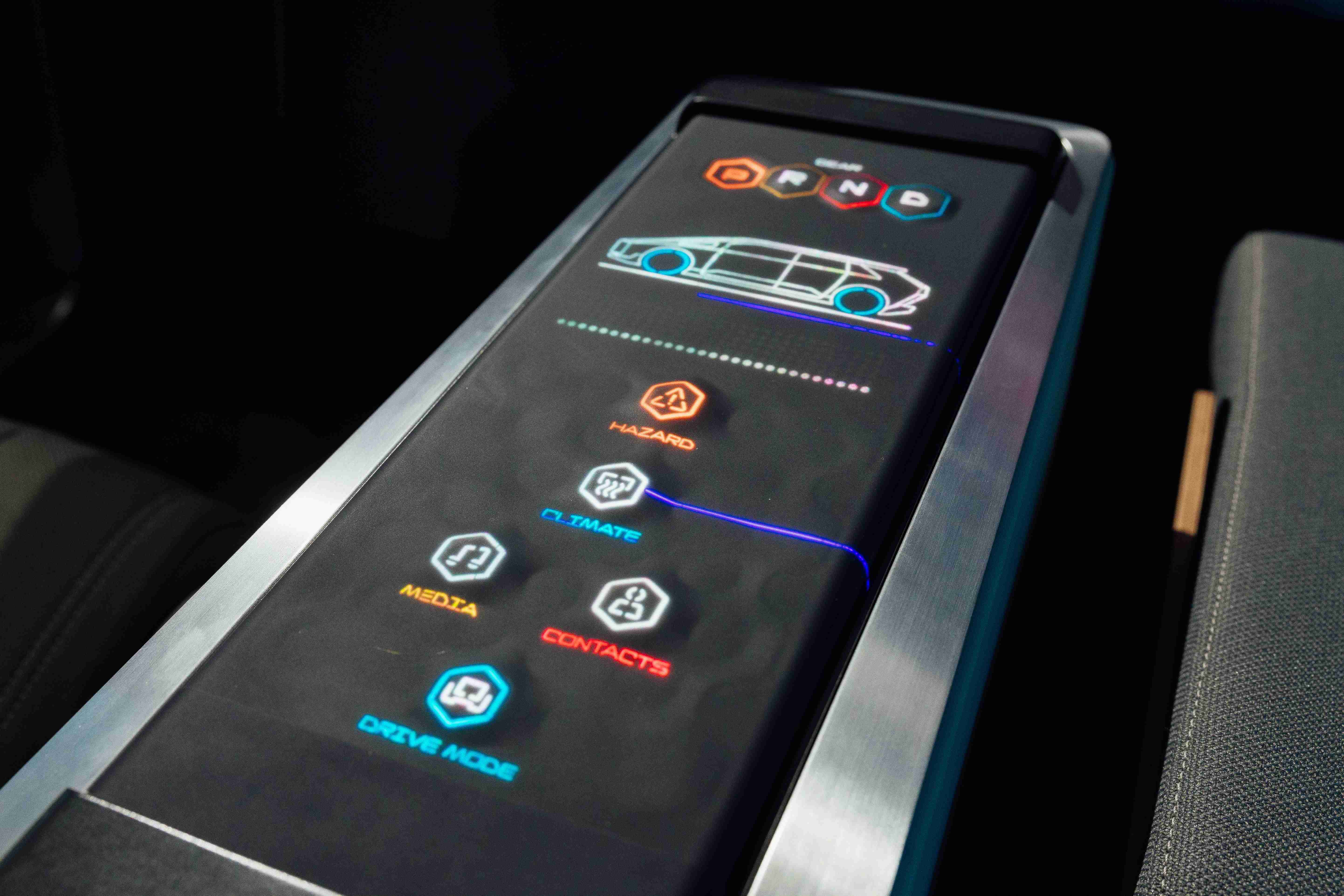 多变形态中控显示(Morphing Center Control)拥有动态变化的表面,,,平时常态显示车辆功能,,,,进一步操作时,,则会隆起成为3D 按钮,,并在触控时以震动回馈,,,,以精细的操作开创人机互动新境界。。。 ![]()